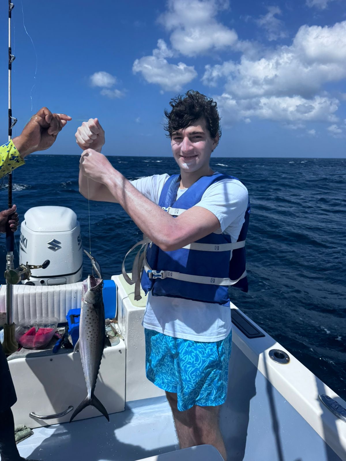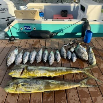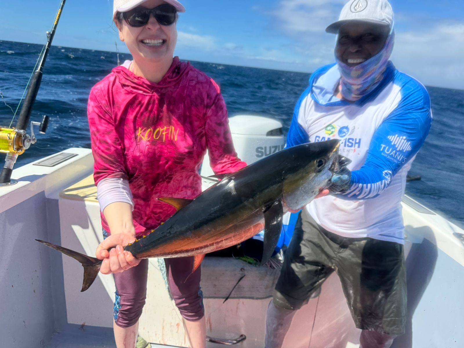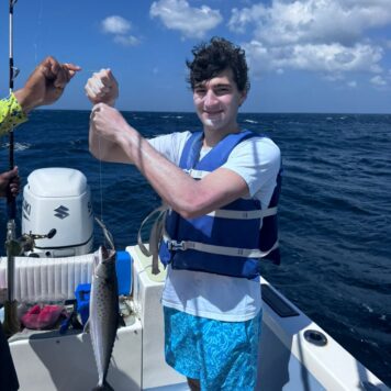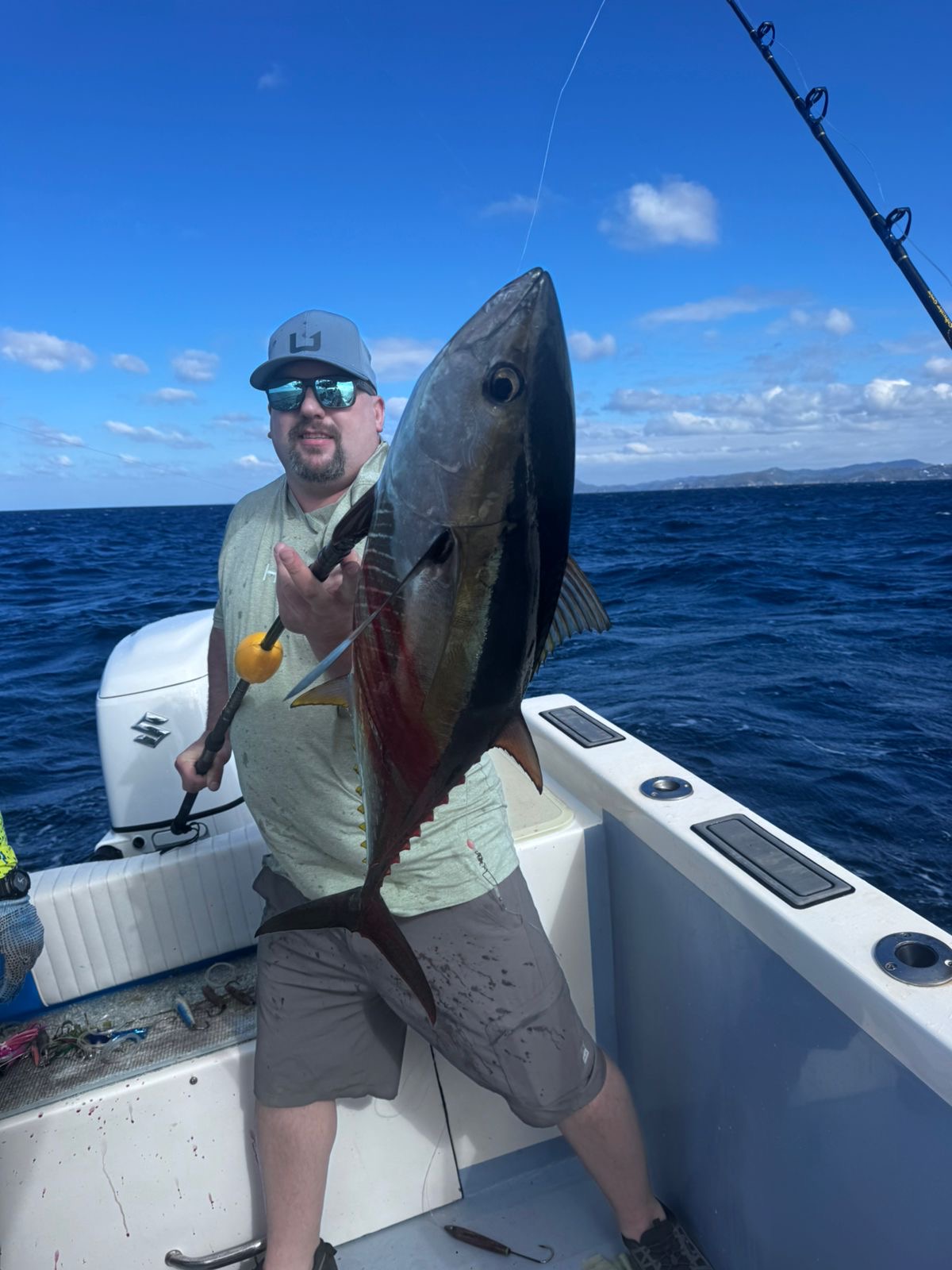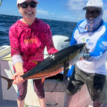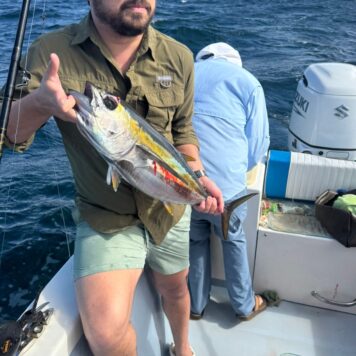 Our boat, Surfish, is a 37-feet center console designed for both functionality and comfort. Powered by a 250 HP Suzuki engine, it can reach a top speed of 40 knots, ensuring you get to your fishing spot quickly.