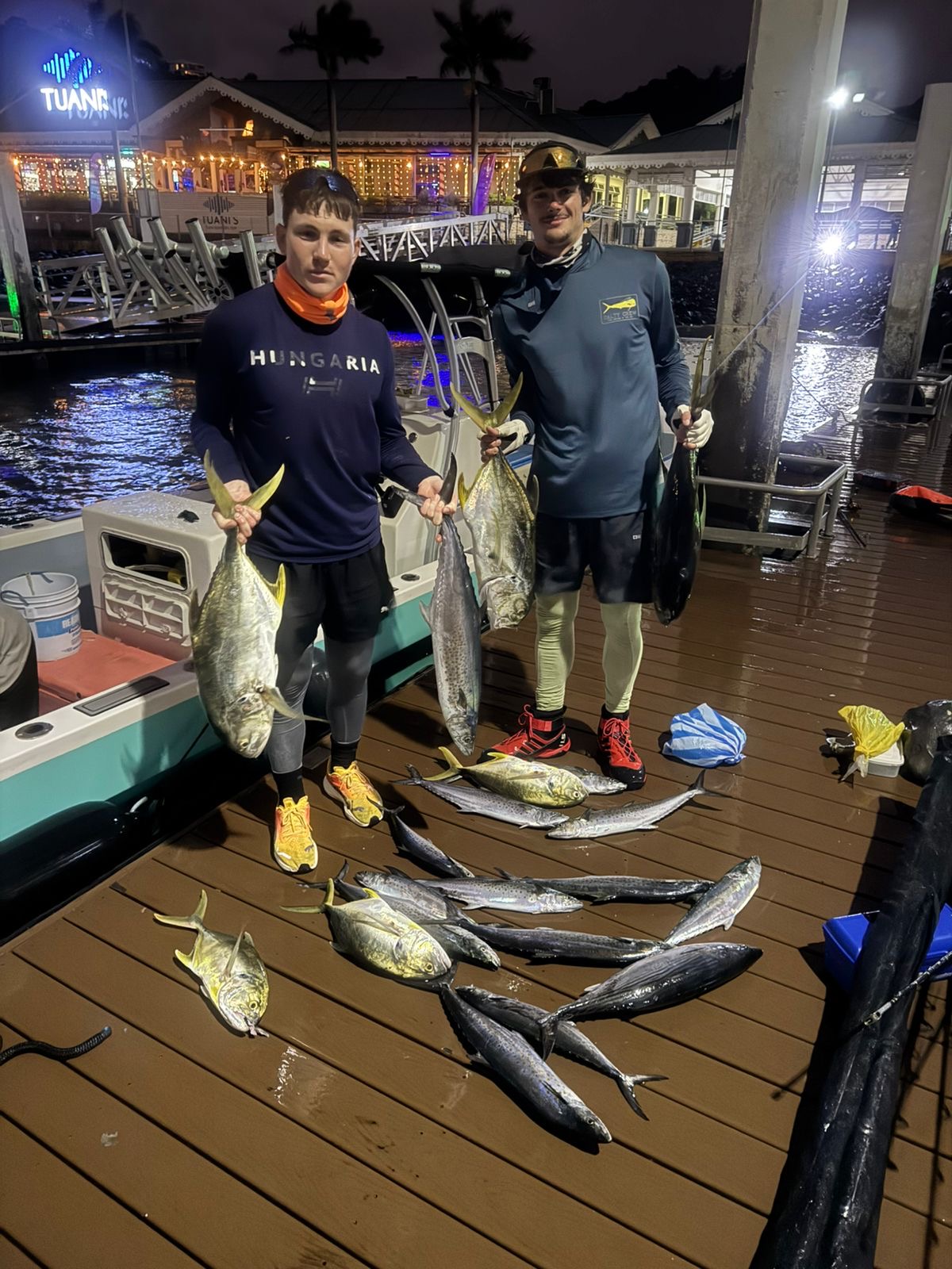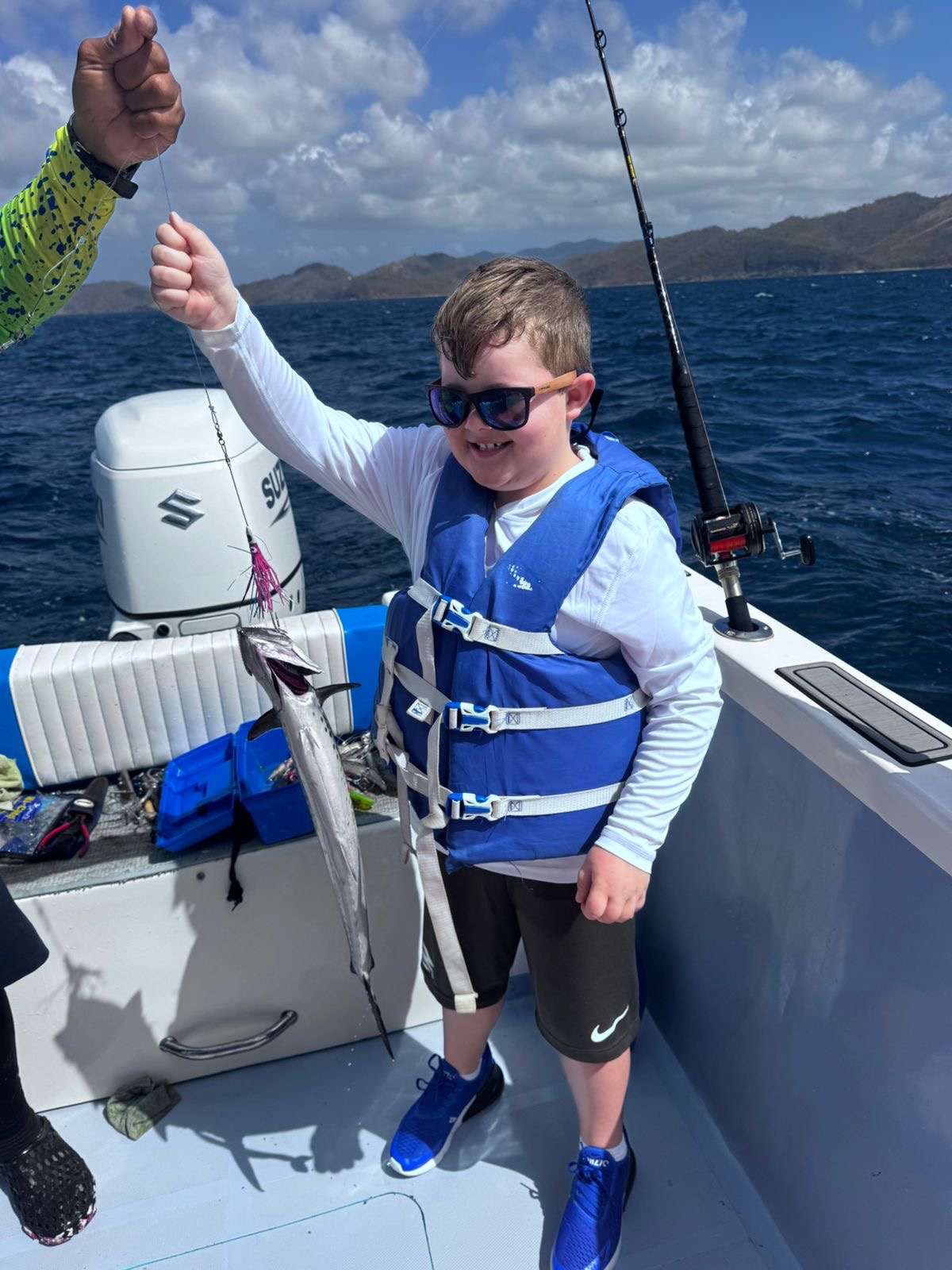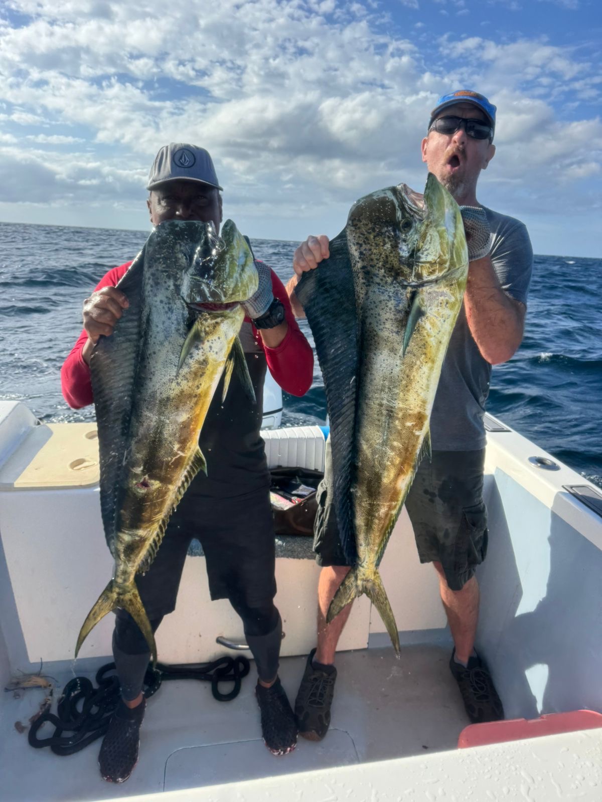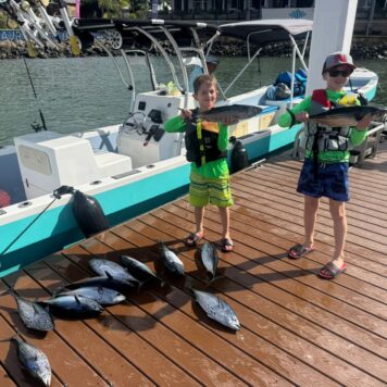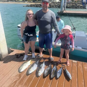 Our boat, Surfish, is a 37-feet center console designed for both functionality and comfort. Powered by a 250 HP Suzuki engine, it can reach a top speed of 40 knots, ensuring you get to your fishing spot quickly.